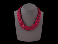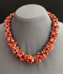 61065- 32 Колье плетеное коралл (имитация) галтовка