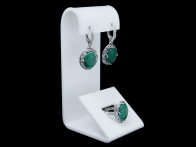 69103-63 Серьги+кольцо малахит (имитация) ювелирный сплав с посеребрением (размер камня 16*12 мм)